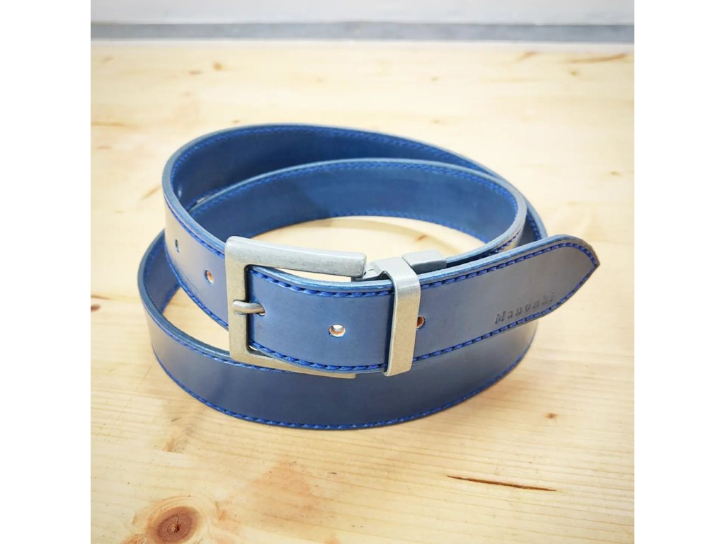 Vystupte z davu s tímto ručně šitým opaskem z prvotřídní hovězí kůže v modrém odstínu. Každý kus je pečlivě zpracován s maximálním důrazem na detail a kvalitu, díky čemuž vzniká doplněk, který nejen skvěle vypadá, ale zároveň dlouho vydrží.
